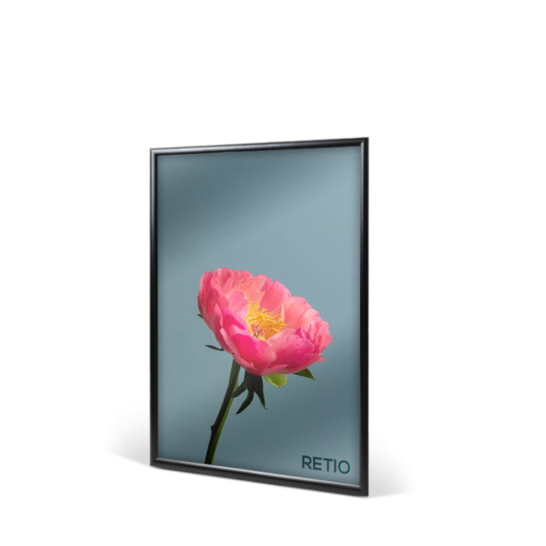 Poster frame made of black anodized aluminum is an elegant and durable solution for displaying an A4 size poster. The frame can be successfully used in retail, office spaces, or as a traditional information board.