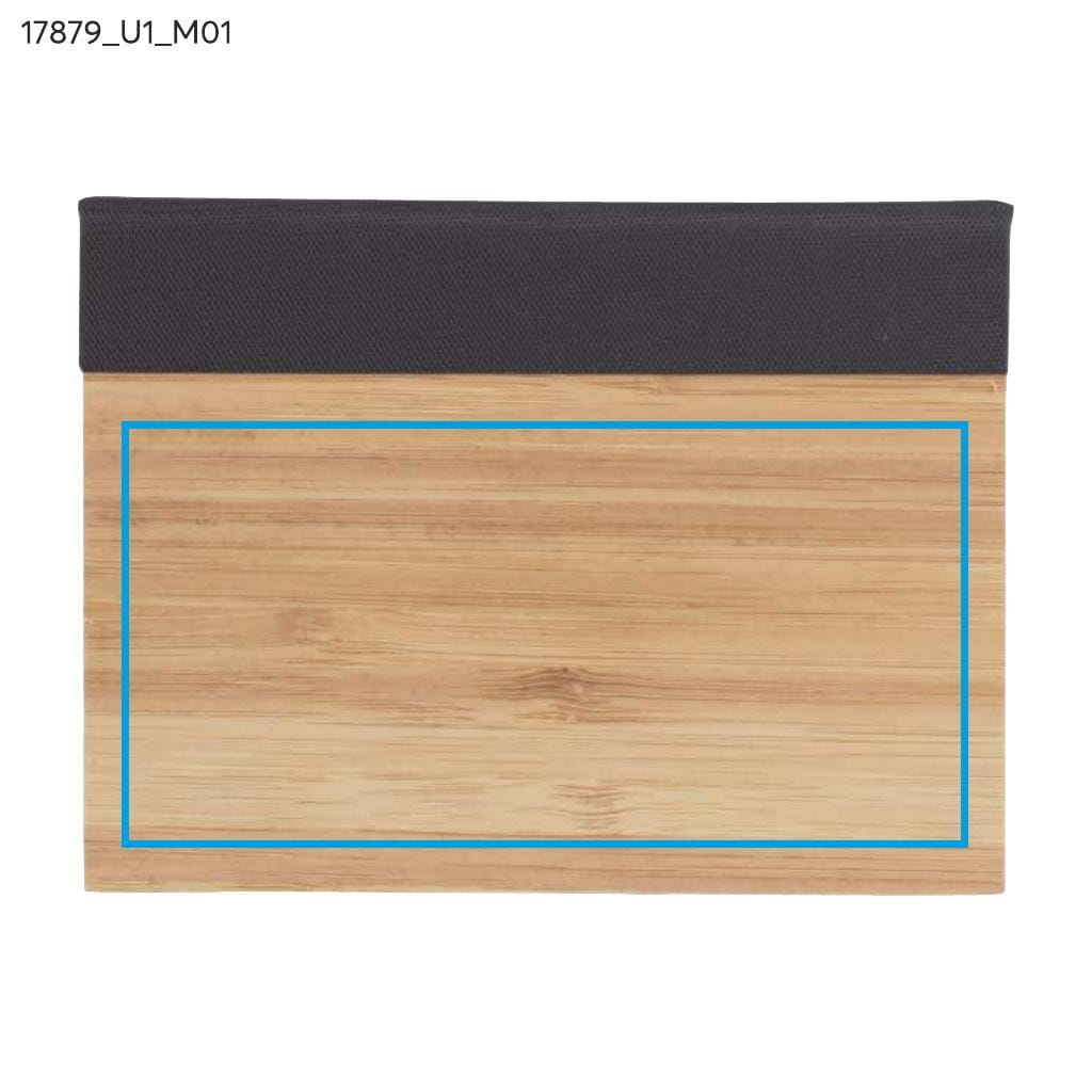 Desk note set packed in a case made of bamboo. The set includes brown notes for writing.