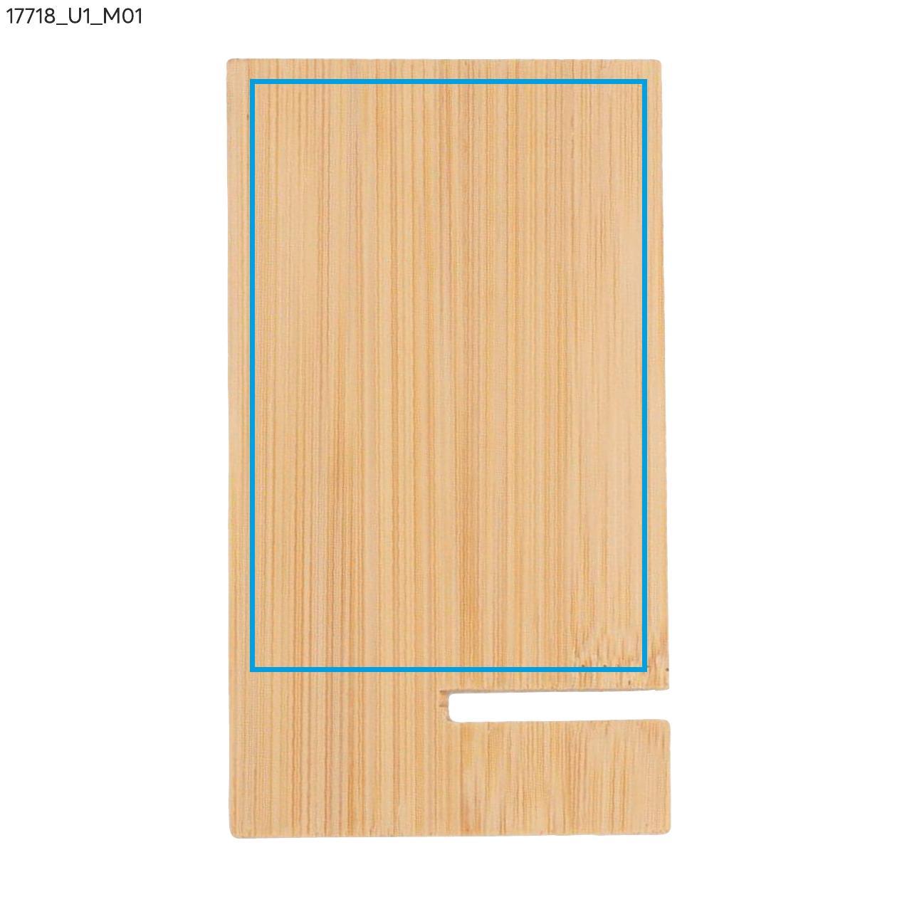 RAGA is a practical phone stand made entirely from an eco-friendly material - bamboo. It provides a stable base for phones and other mobile devices. The cable hole allows you to easily charge the device while using the stand. The product is self-assembled by connecting two bamboo plates. The stand is packed in a brown paper envelope with an infographic - assembly instructions.