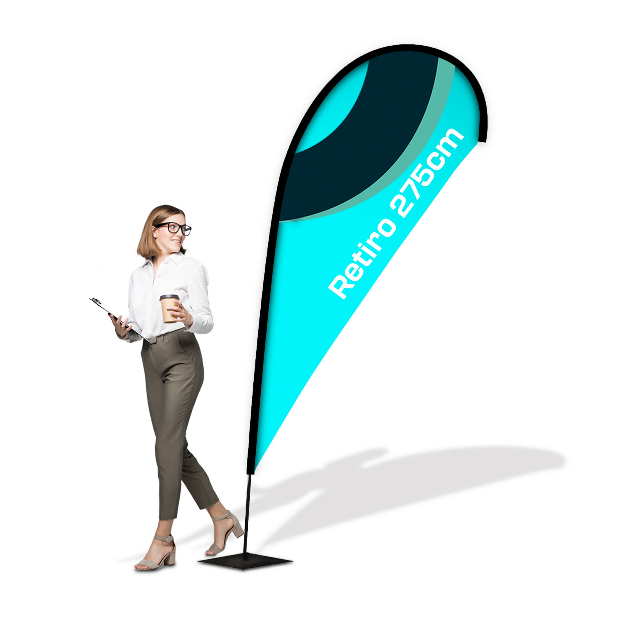 Technical data of the RETIRO advertising flag in TEARDROP shape: