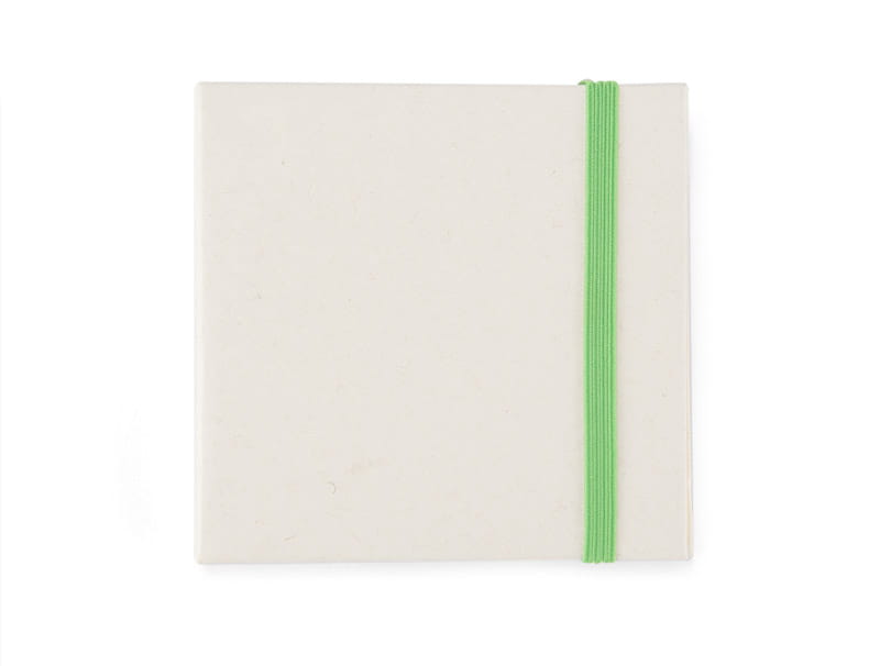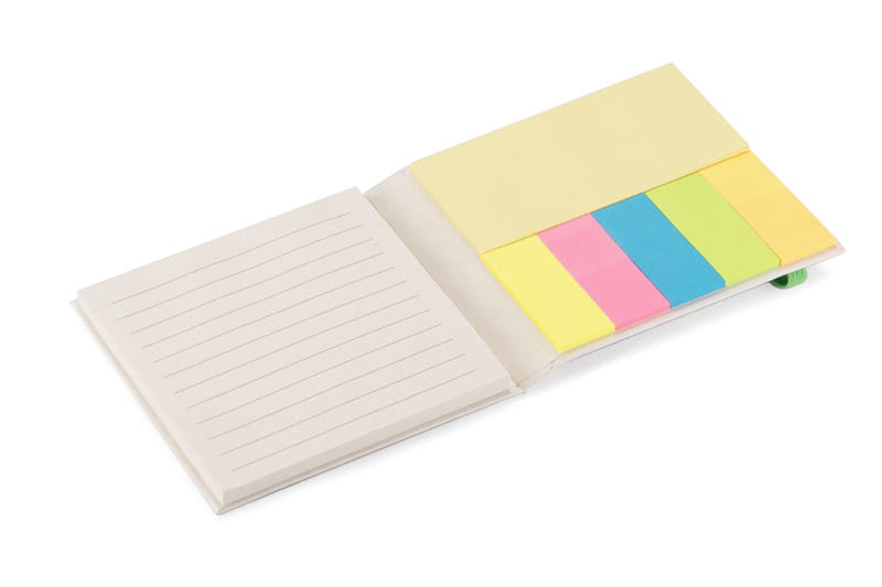 REZA self-adhesive notes made from paper sourced from recycled milk cartons are an eco-friendly solution for companies seeking sustainable office supplies. The set includes colorful tabs, medium yellow notes, and square lined notes, all conveniently folded and secured with an elastic band, with the option for branding on the cover.