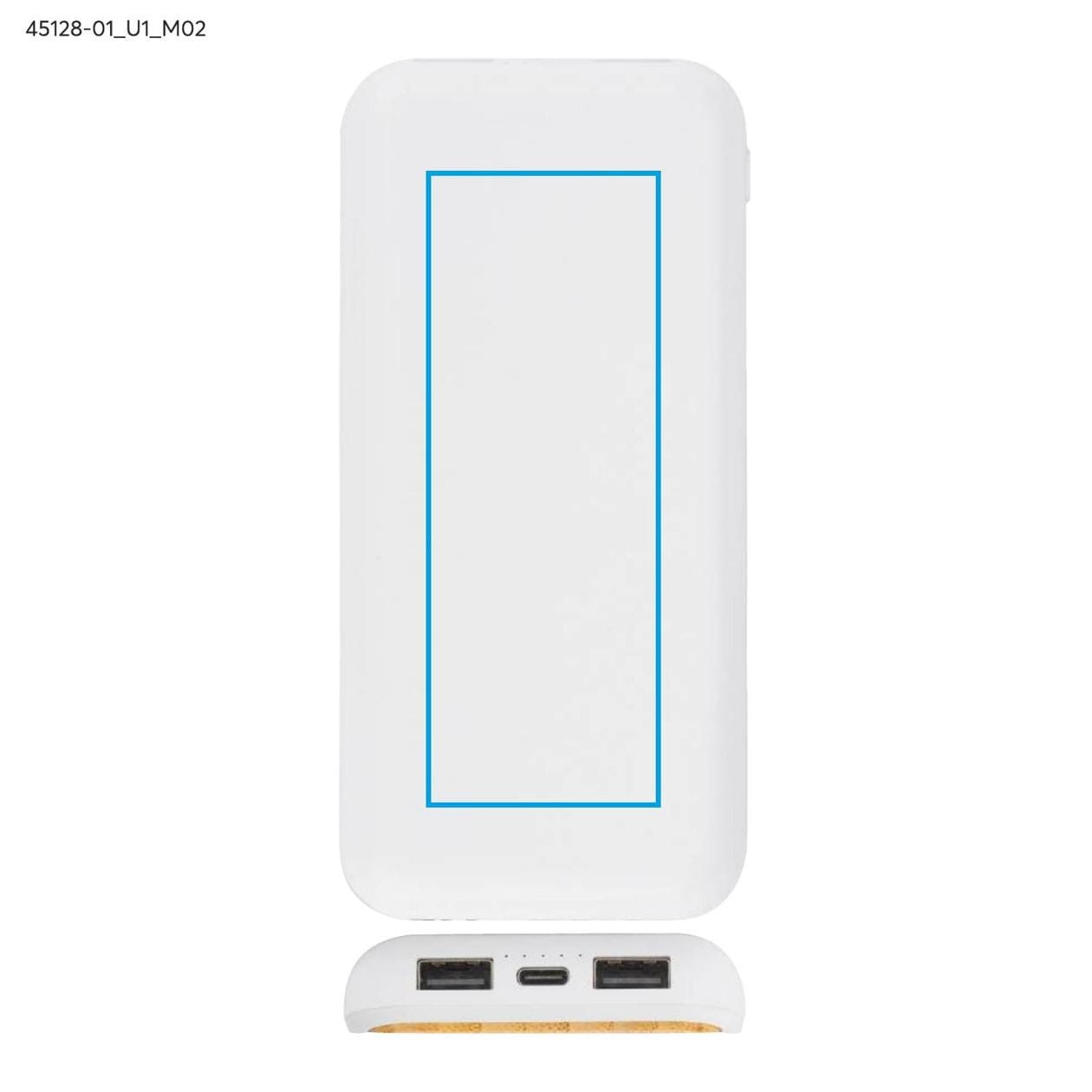 The RONI power bank is the perfect combination of aesthetics and functionality that will surely attract the attention of every user. Its subtle white color combined with an elegant bamboo accent makes it not only a practical device but also a stylish promotional gadget. RONI fits perfectly into modern trends where design is just as important as performance. Whether you are traveling, at work, or at home, this power bank stands out from the rest, offering both aesthetics and high-quality craftsmanship.