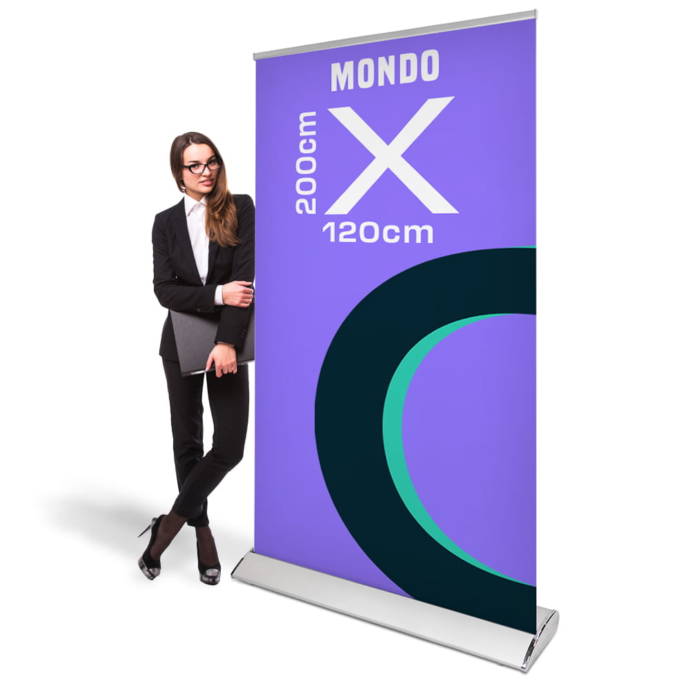 Rollup Mondo 120 x 200 cm retractable advertising stand with printing option