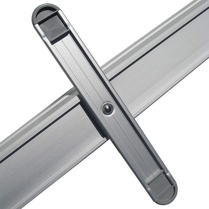 The Rollup is made of thin lightweight aluminum. It is equipped with two movable feet that stabilize the stand and a three-section pole that keeps the graphic taut. The snap frame mounted on the top of the graphic holds it well stretched, preventing the corners of the print from bending.