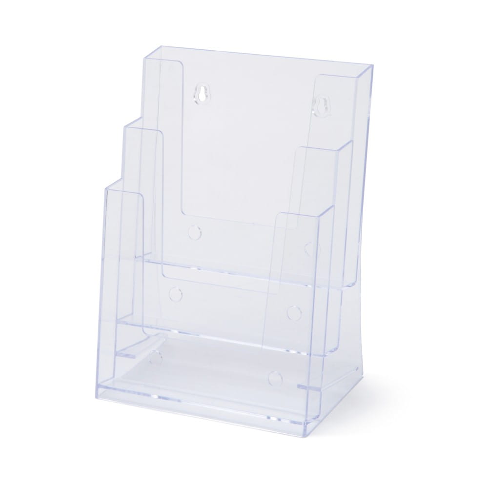 Extremely practical and universal leaflet rack in which you can put leaflets or prospectus. Leaflet stand is made of high quality transparent polystyrene.It was made using the injection method, i.e. it is a cast of the mold, thanks to which the highest quality of finishing and 100% repeatability of each rack art.