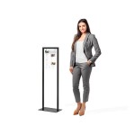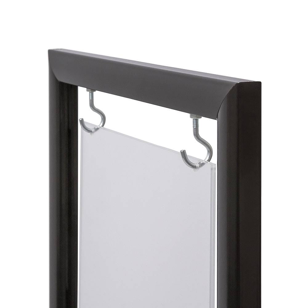 The swinging informational stand with an attractive appearance is an excellent alternative to traditional advertising stands. The product features a frame in the popular A4 format, hung with hooks on a steel structure painted with black powder coating.
