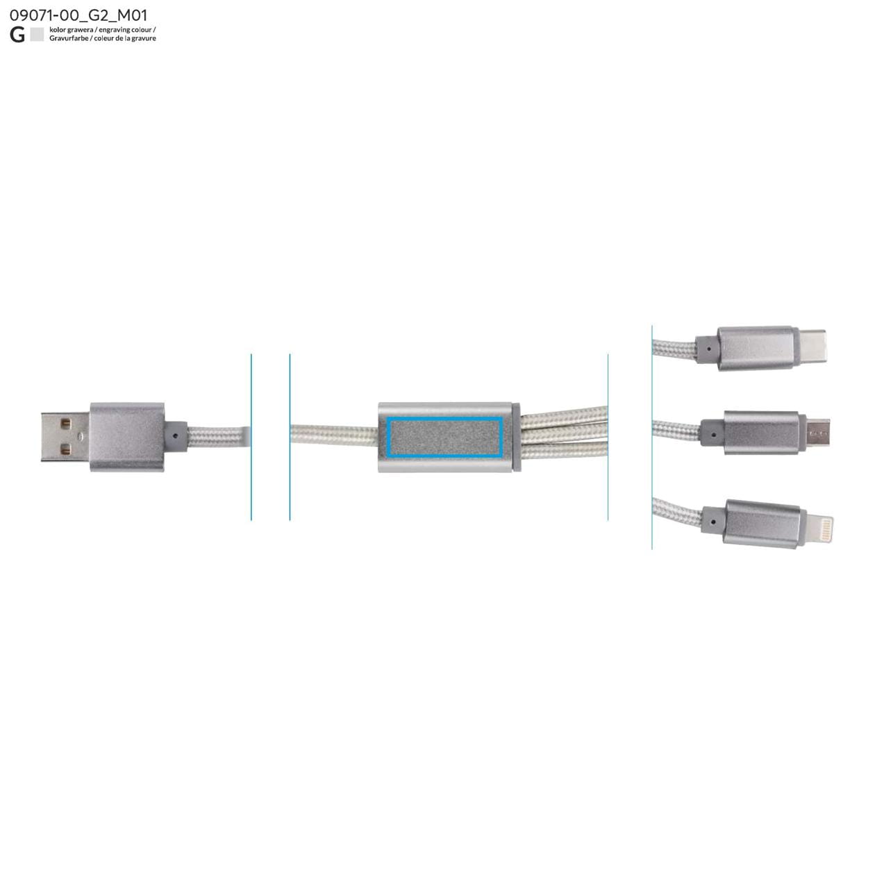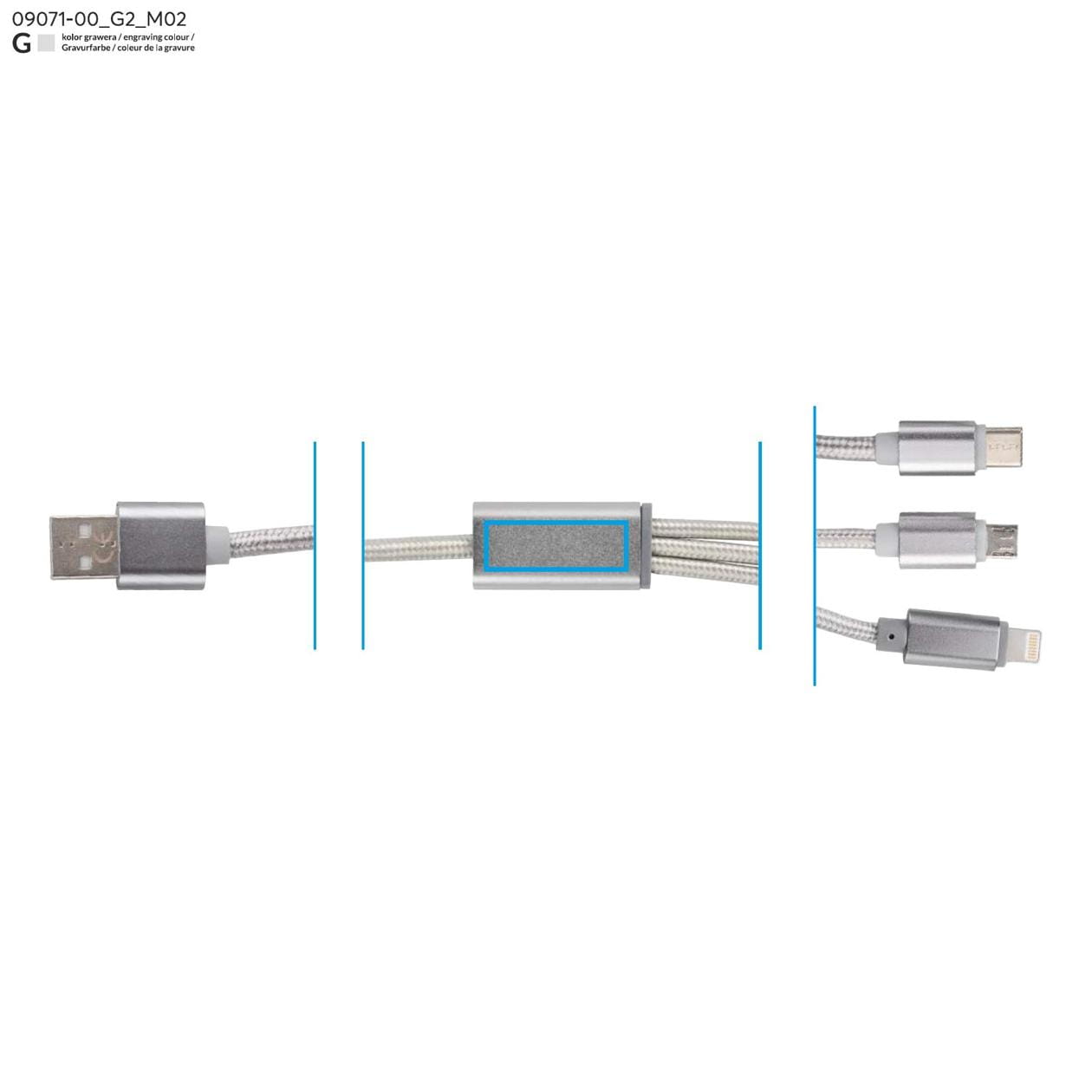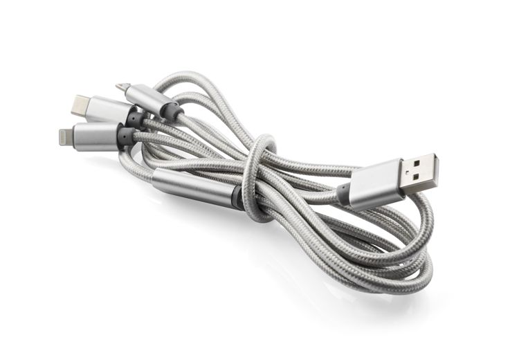 TALA 3-in-1 USB Cable Silver with Logo Print