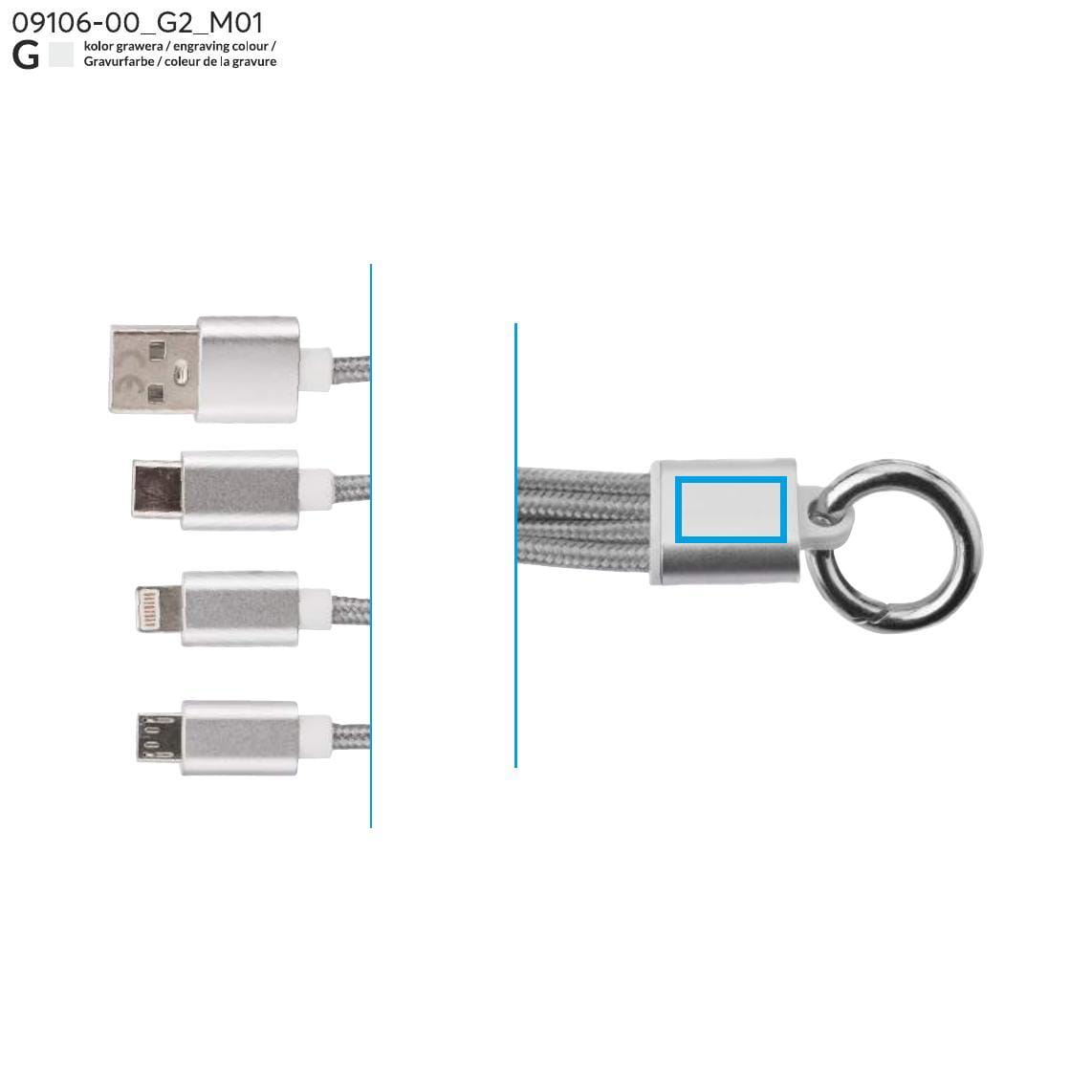 TAUS 3-in-1 USB Cable Silver with Logo Print