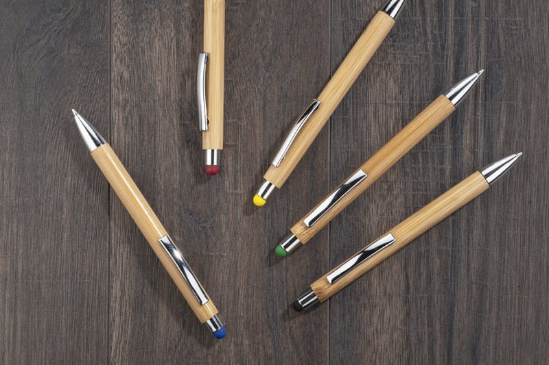TUSO is a pen that combines natural beauty with modern design. Made entirely from high-quality bamboo, this pen stands out for its eco-friendly production approach, making it an ideal choice for those who value sustainability and environmental protection. Its unique, organic appearance makes it not only a writing tool but also an elegant accessory for the office or bag. Thanks to bamboo being a lightweight and durable material, the TUSO pen is both practical and aesthetically pleasing. The chrome finishes of the TUSO pen add a touch of class and emphasize its modern character. The use of chrome ensures that the pen not only looks elegant but is also resistant to scratches and damage. Additionally, the colorful stylus tip at the end of the pen serves as an interesting visual accent while increasing its functionality. This makes the TUSO pen perfect not only for traditional writing but also for operating smartphones and tablets. The TUSO pen features an automatic mechanism, which means its use is extremely convenient and intuitive. The blue G2 refill provides smooth writing and intense color, making every note a pleasure. Whether you need a pen for everyday notes or signing important documents, TUSO will surely meet your expectations.