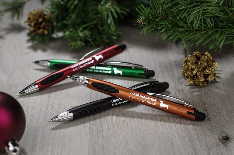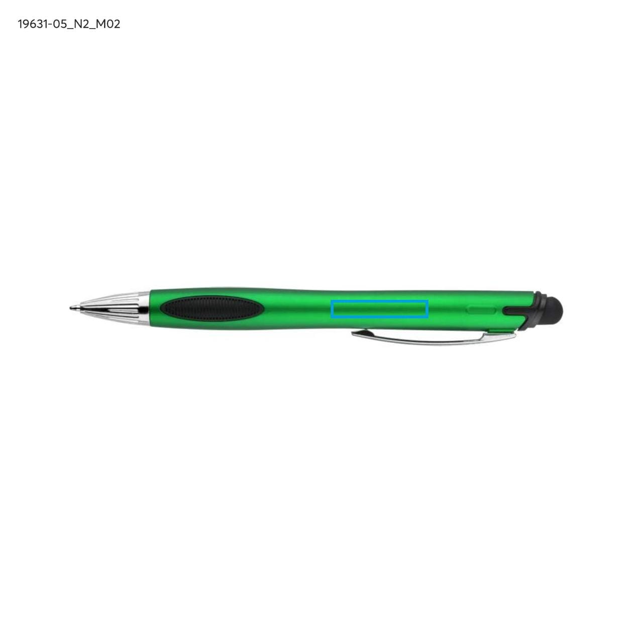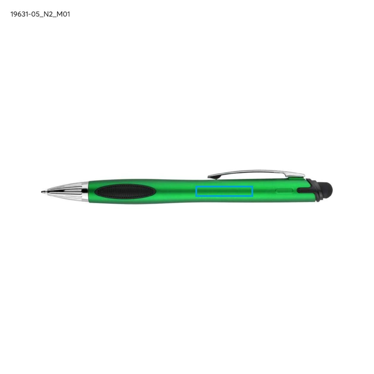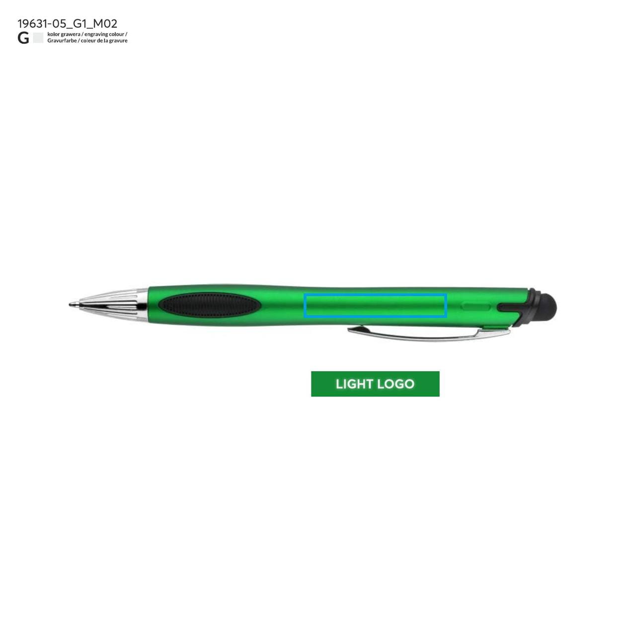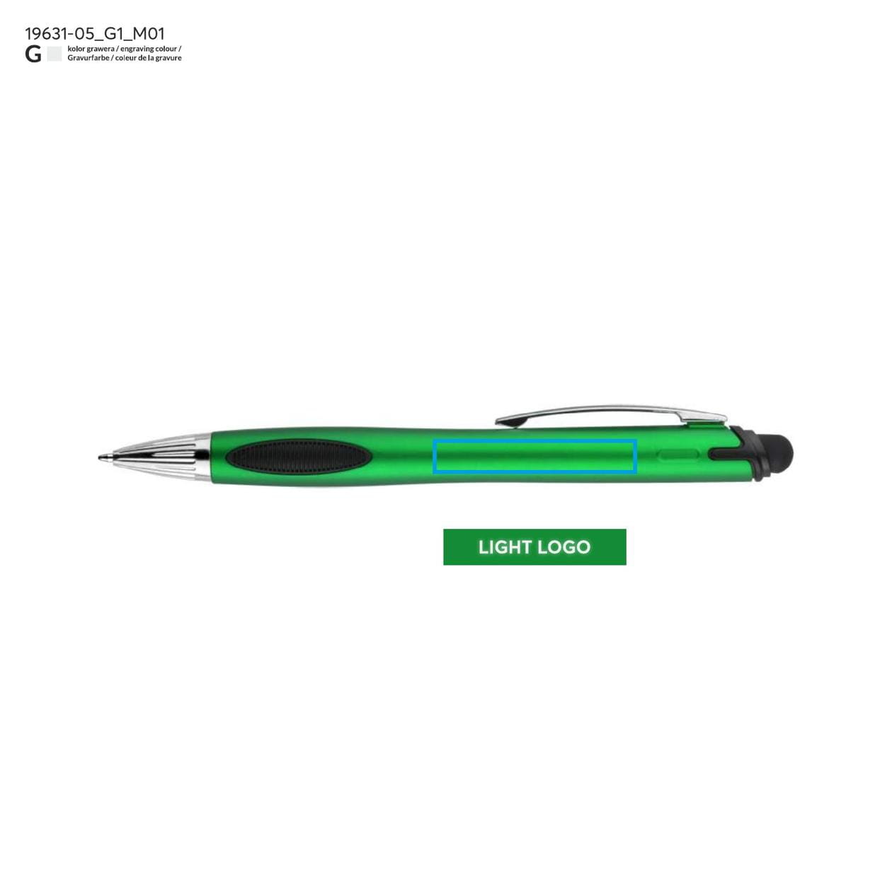 Touch Litt Green pen with a logo print