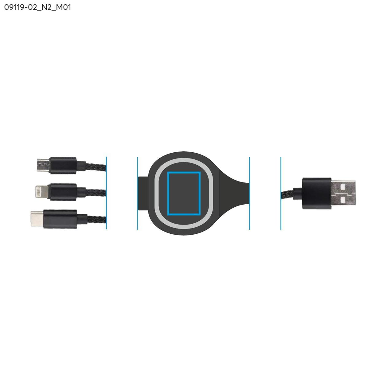 The innovative design of the LUX cable combines aesthetics and functionality. With micro USB, USB Type-C, and Lightning connectors, it is a 3 in 1 cable that meets the needs of most mobile device users. Additionally, its 1-meter length makes it flexible enough to use in various situations, yet compact enough to fit in a backpack or bag. The reinforced material from which it is made guarantees durability and resistance to damage, which is crucial for everyday use.