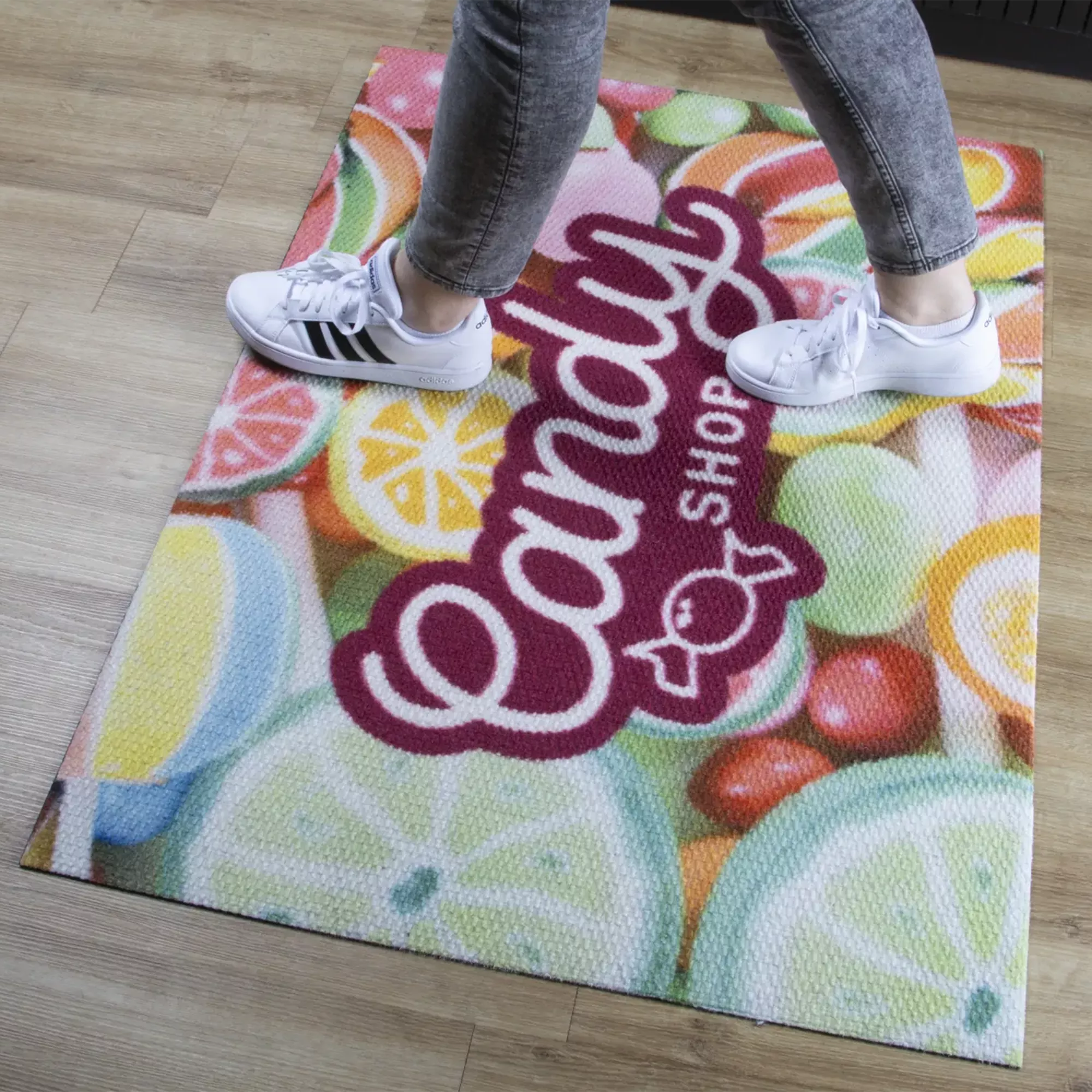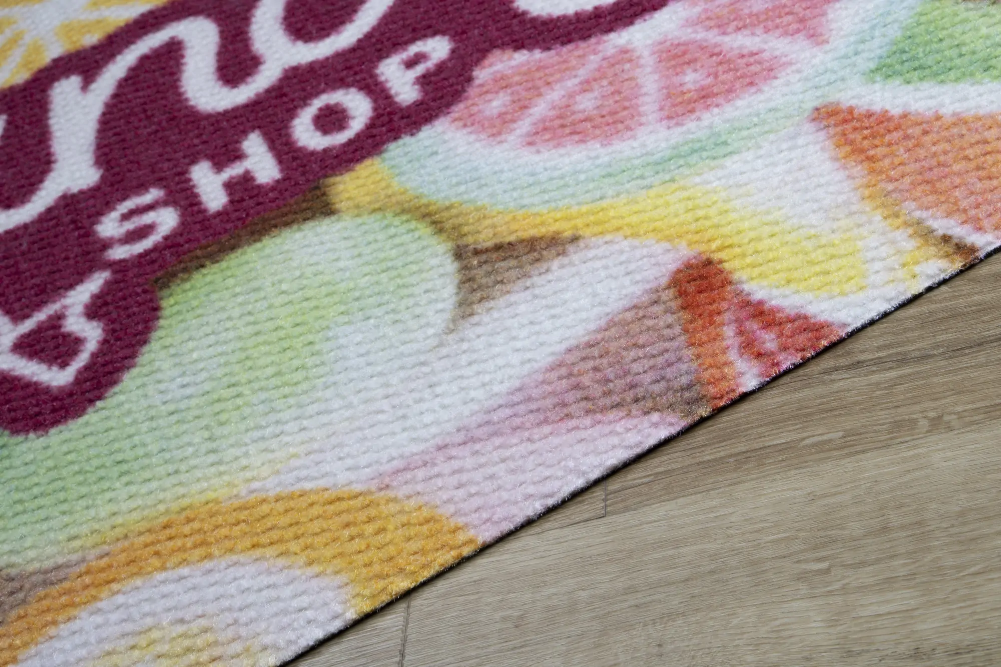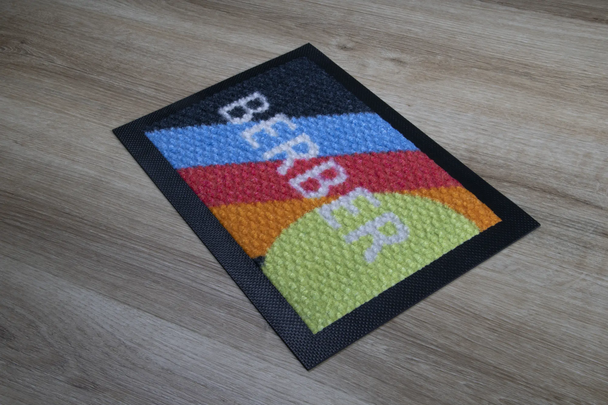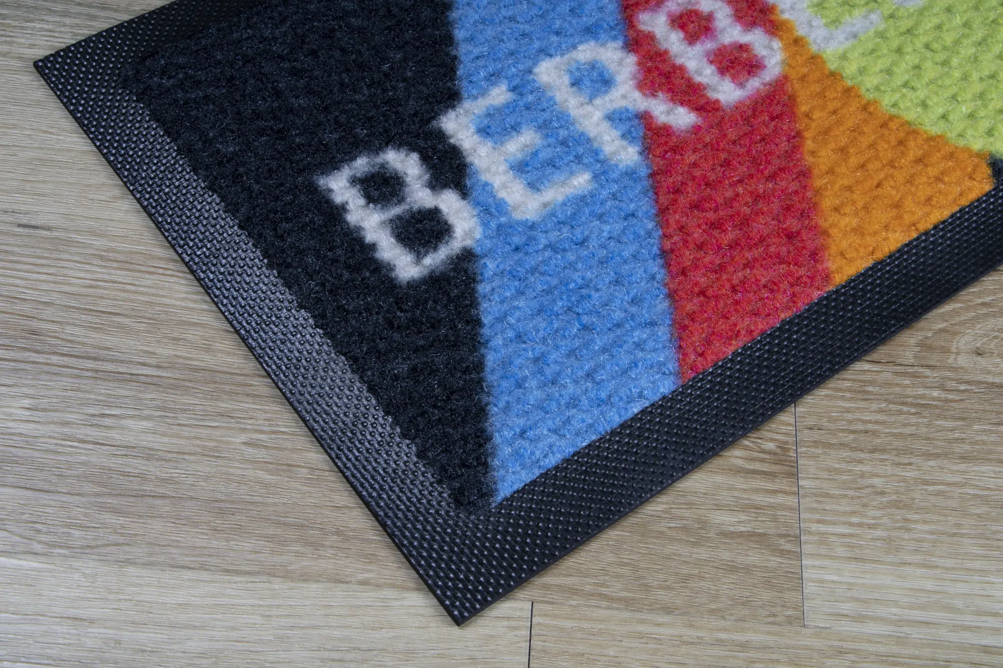 As with all our floor mats, there is also a possibility to apply any print. Thanks to the Berber weave, prints on the carpet stand out with exceptional clarity, which certainly enhances the positive advertising effect.