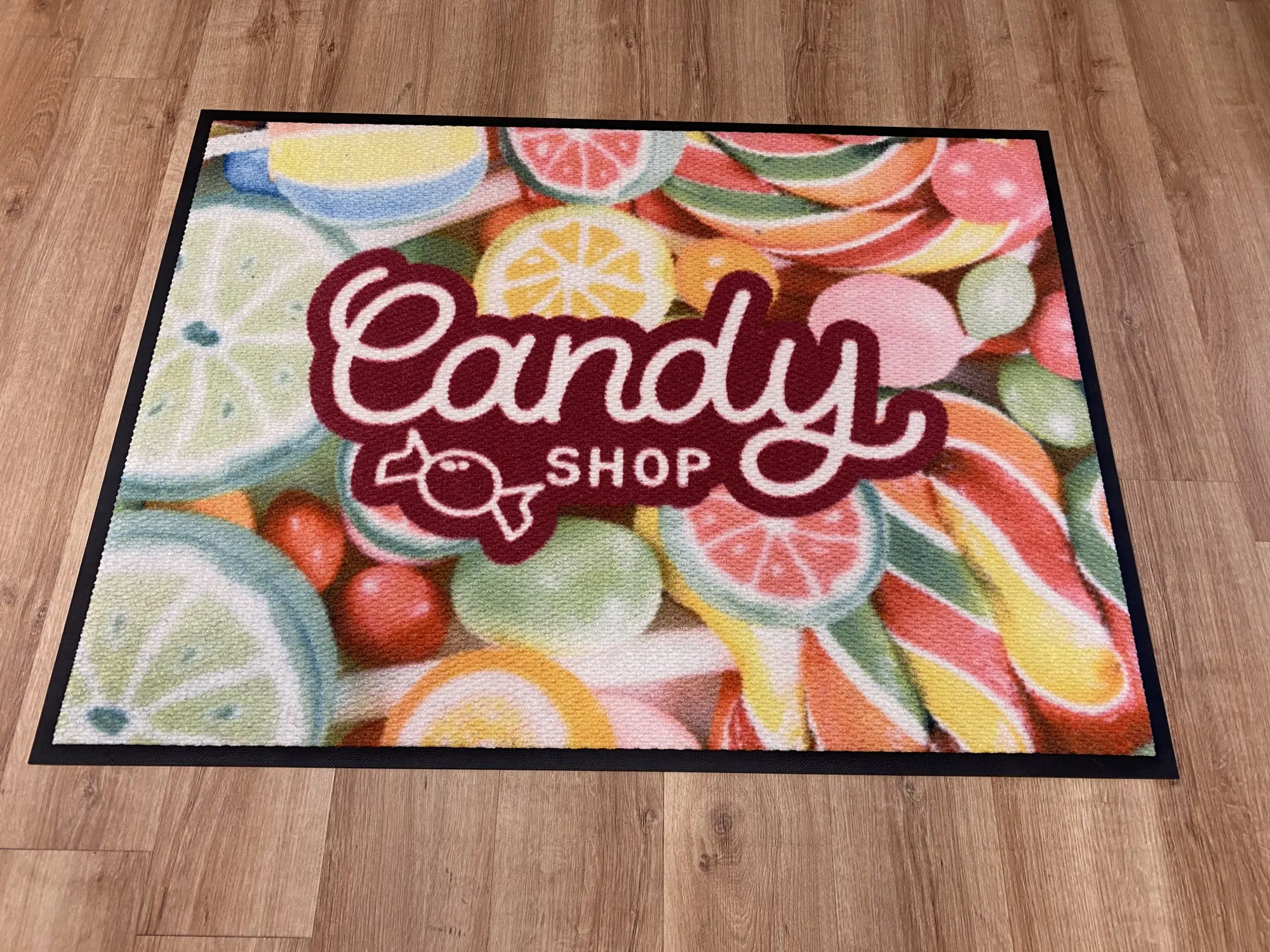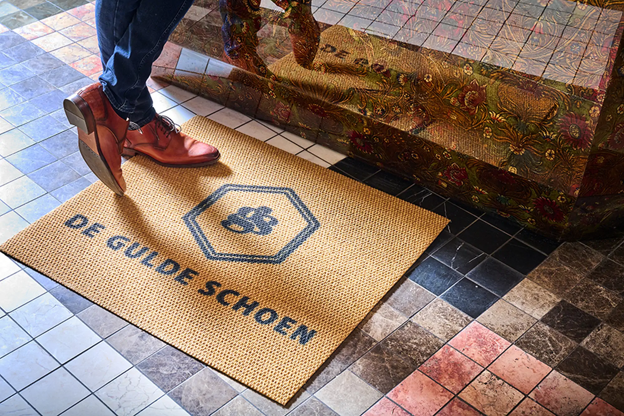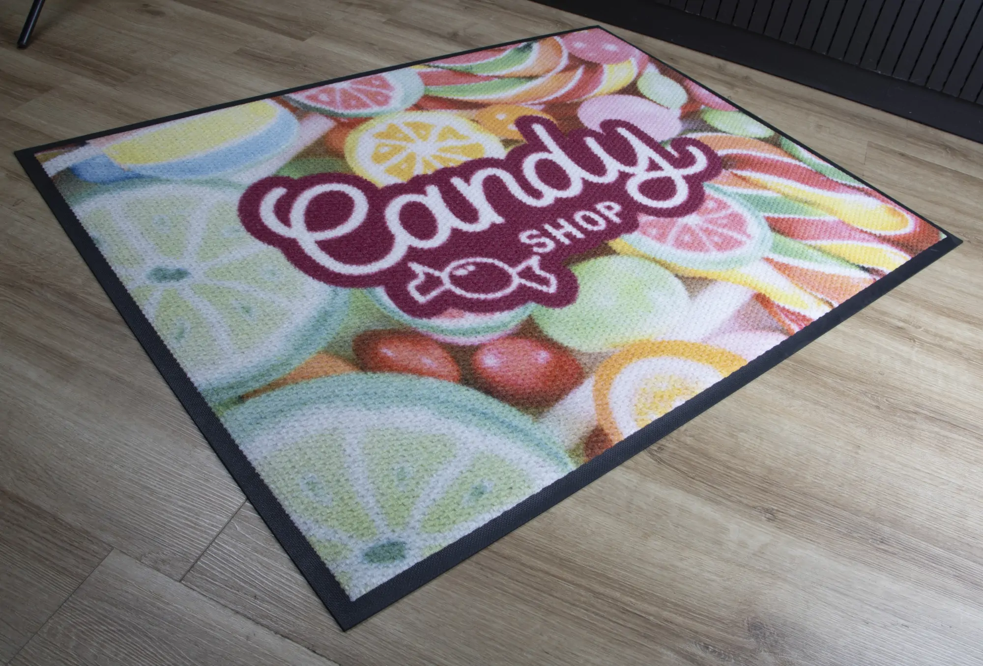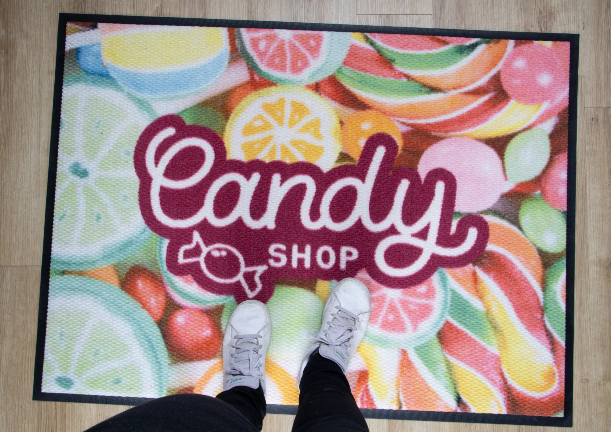 As with all our floor mats, there is also a possibility to apply any print. Thanks to the Berber weave, prints on the carpet stand out with exceptional clarity, which certainly enhances the positive advertising effect.