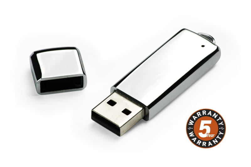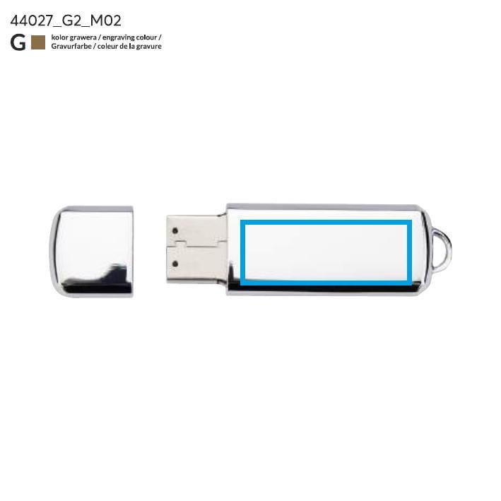 Made of chrome-plated metal, this portable 16 GB USB flash drive is an ideal promotional gift. We perform marking on the drive using engraving. USB standard: 2.0; write speed: 5 MB/s; read speed: 18 MB/s. The USB flash drive comes with a 5-year manufacturer warranty and has a CE certificate.